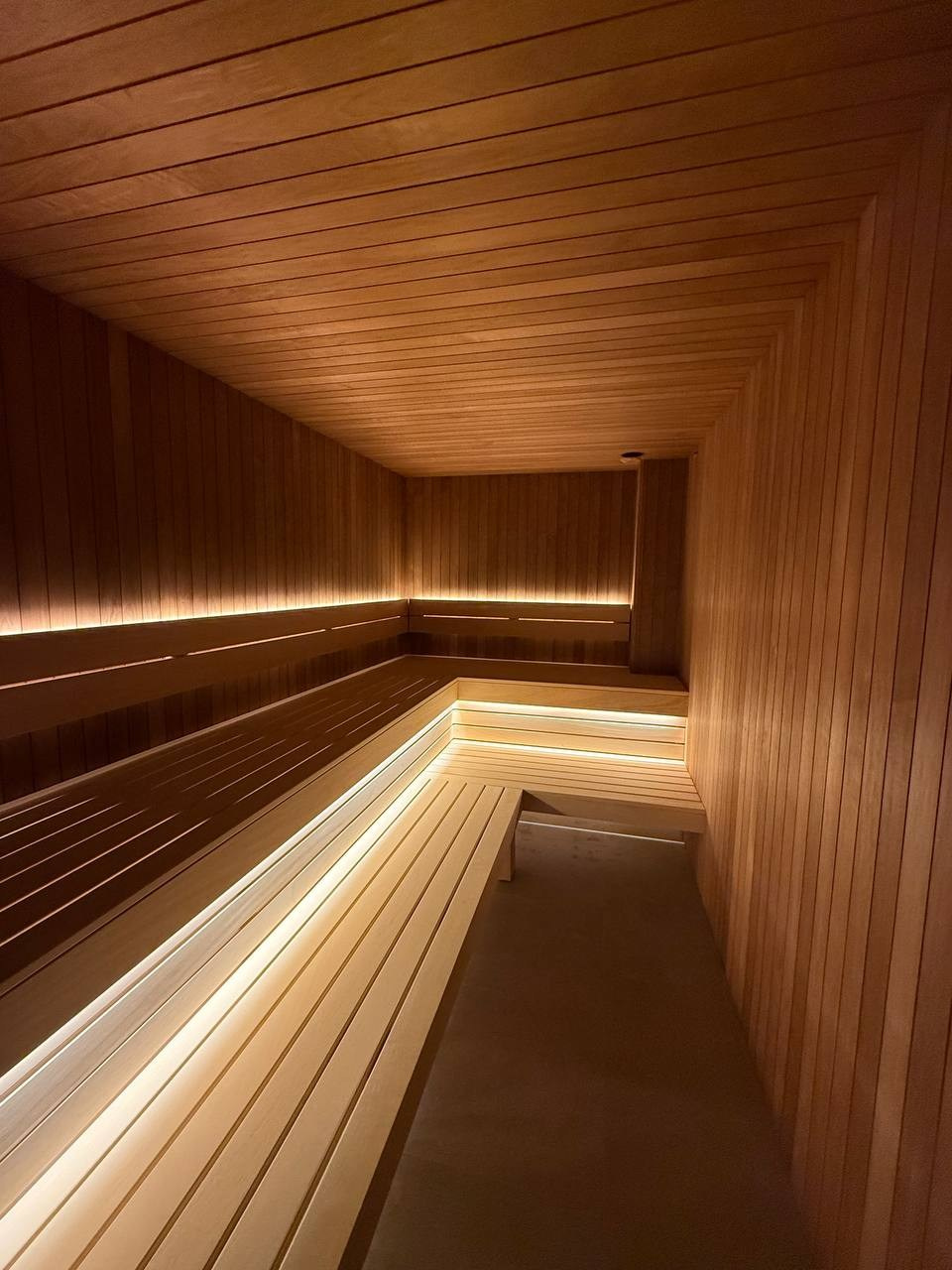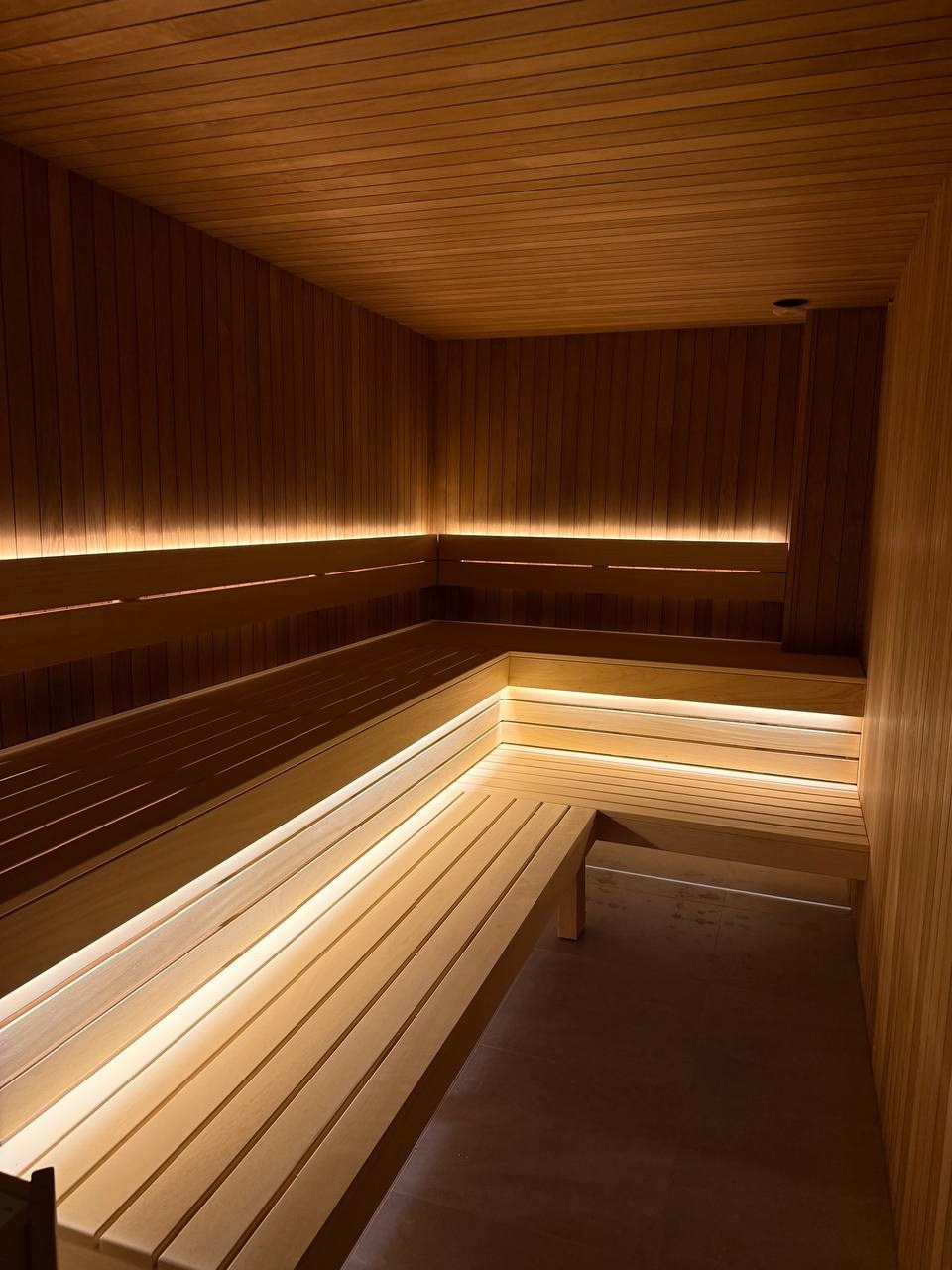Сауна выглядит сдержанно и аккуратно, но при этом полностью соответствует требованиям безопасности и долговечности для общественного пространства.