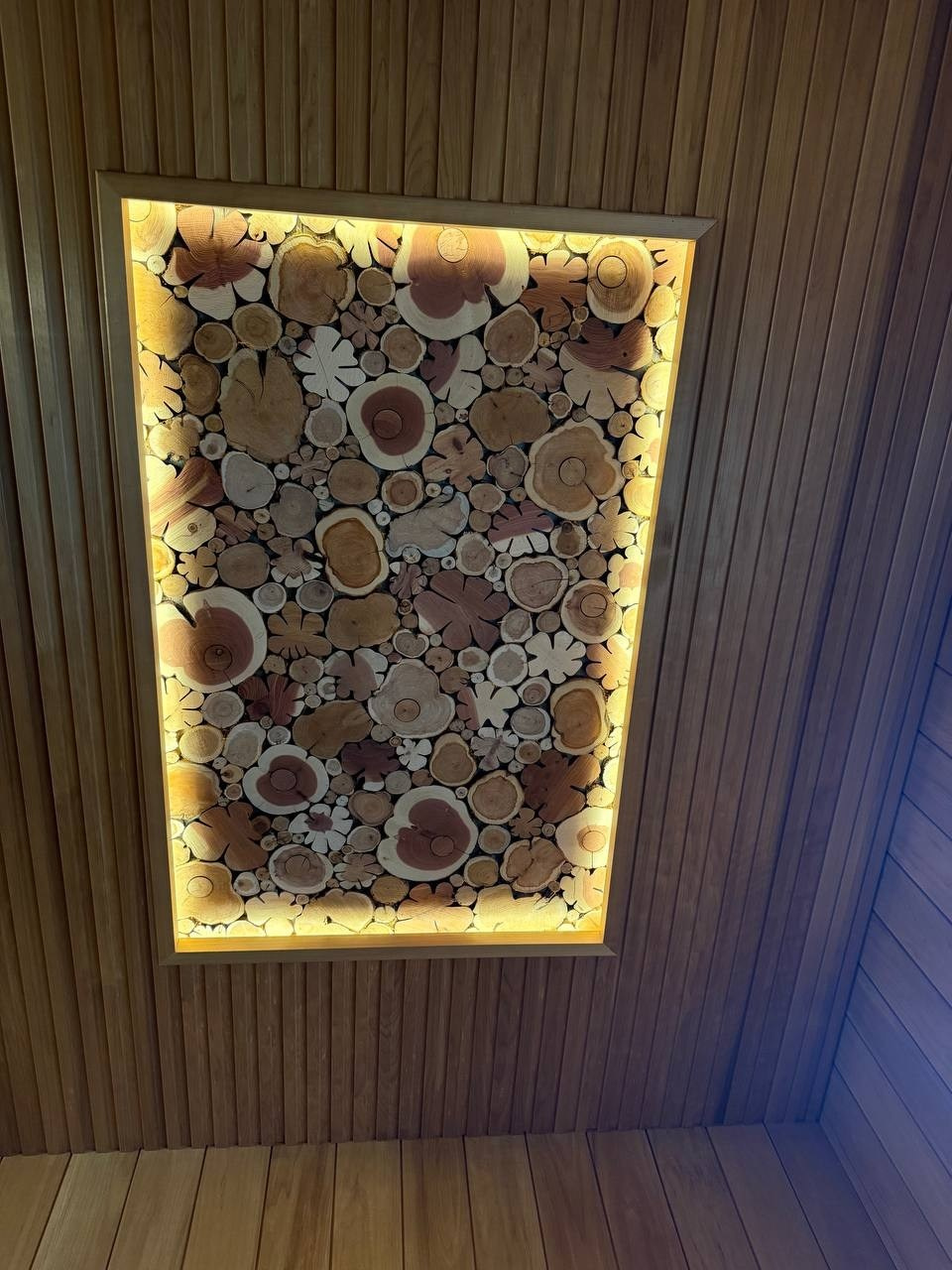 Сауна с панно из прессованных трав и потолком из канадского кедра