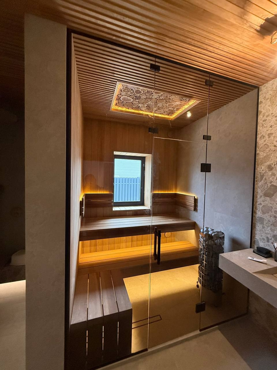 Уютная и ароматная сауна в квартире с выразительным природным характером.