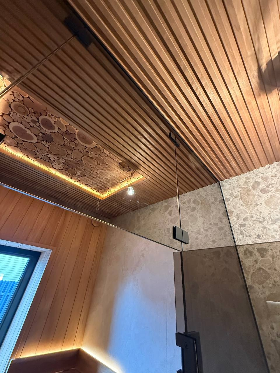 Проект премиальной бани из канадского кедра с декоративным потолком «звёздное небо». Выполнена...
