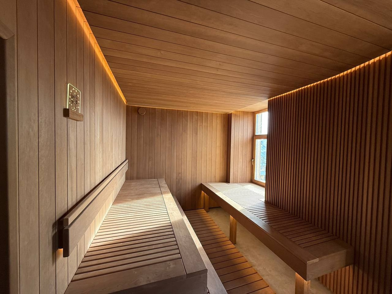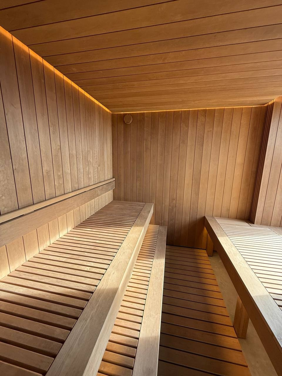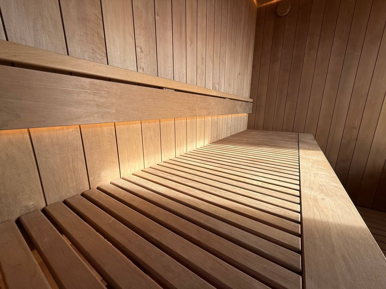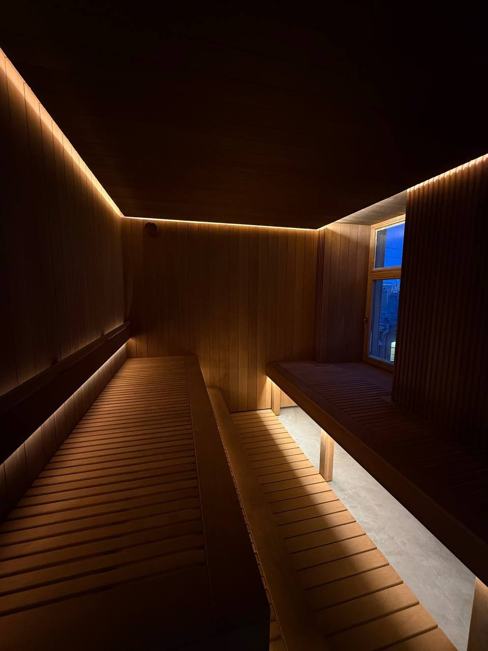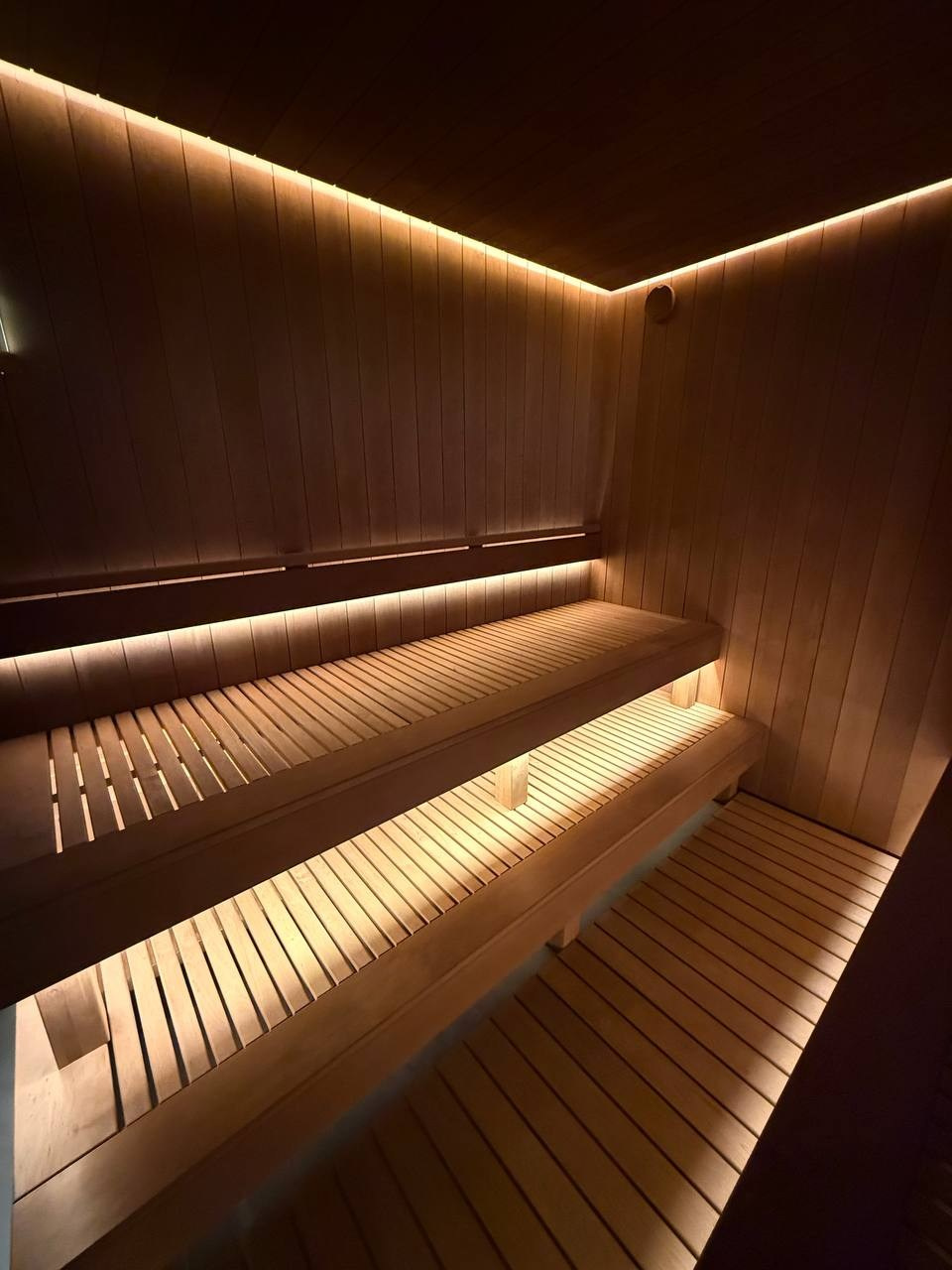 Получилась просторная и современная сауна с выразительной архитектурой и премиальными материалами.