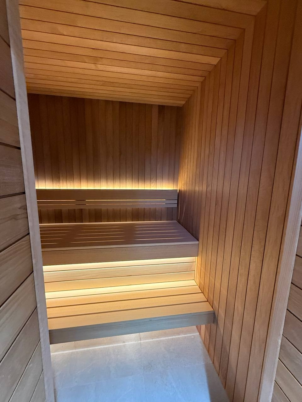 Несмотря на меньший размер помещения, сауна выполнена с тем же уровнем инженерной проработки и качества материалов.